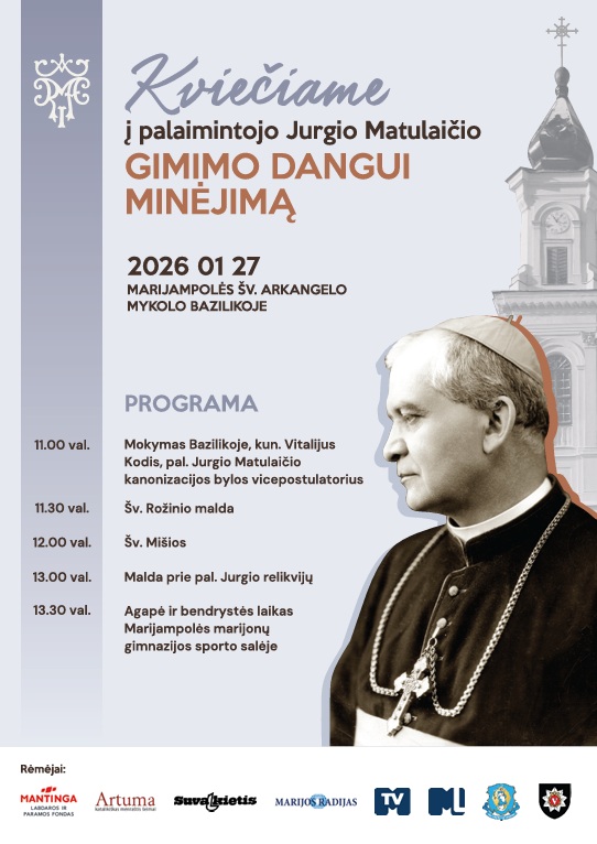 Sausio 27 d. (antradienis) Marijampolėje vyks pal. Jurgio Matulaičio gimimo Dangui minėjimas. Kviečiame dalyvauti!